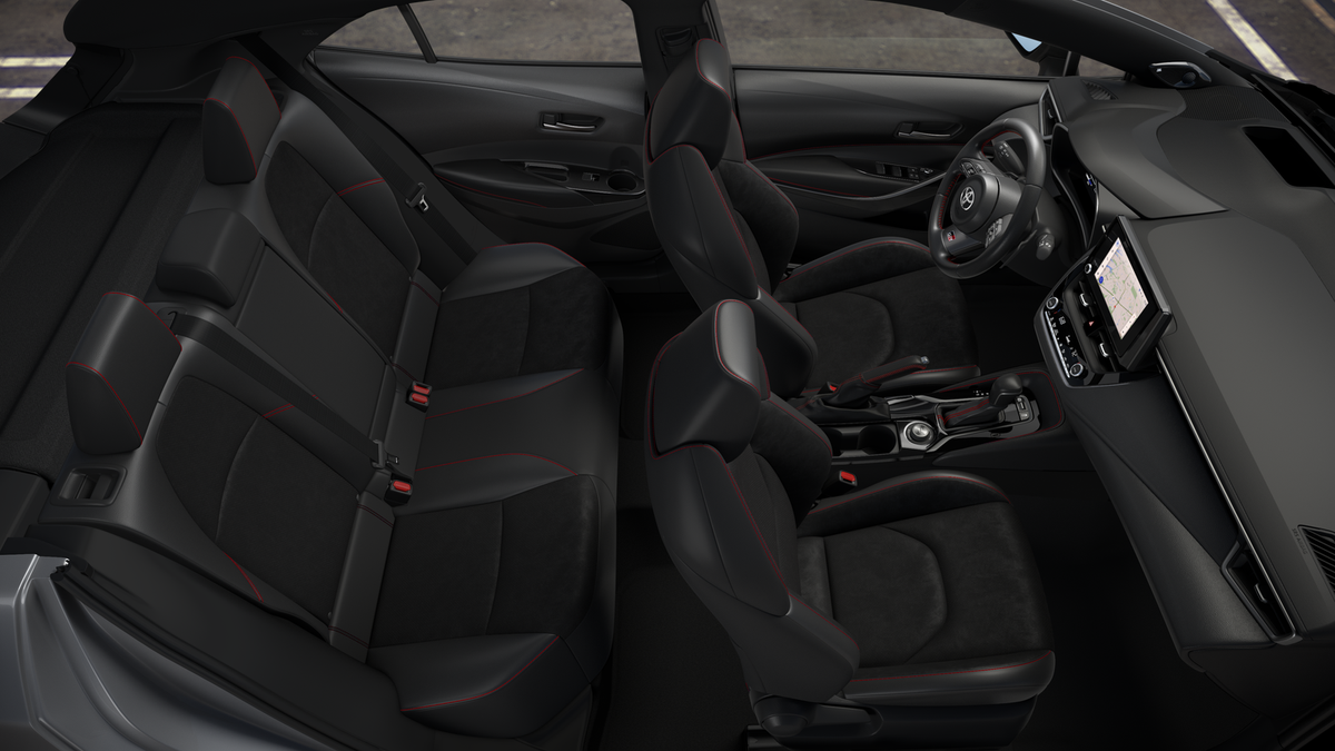 - BRIN•NAUB® and synthetic leather-trimmed sport seats with Red stitching and GR-badged headrests; 6-way adjustable driver's seat with seatback pocket; 4-way adjustable front passenger seat with seatback pocket