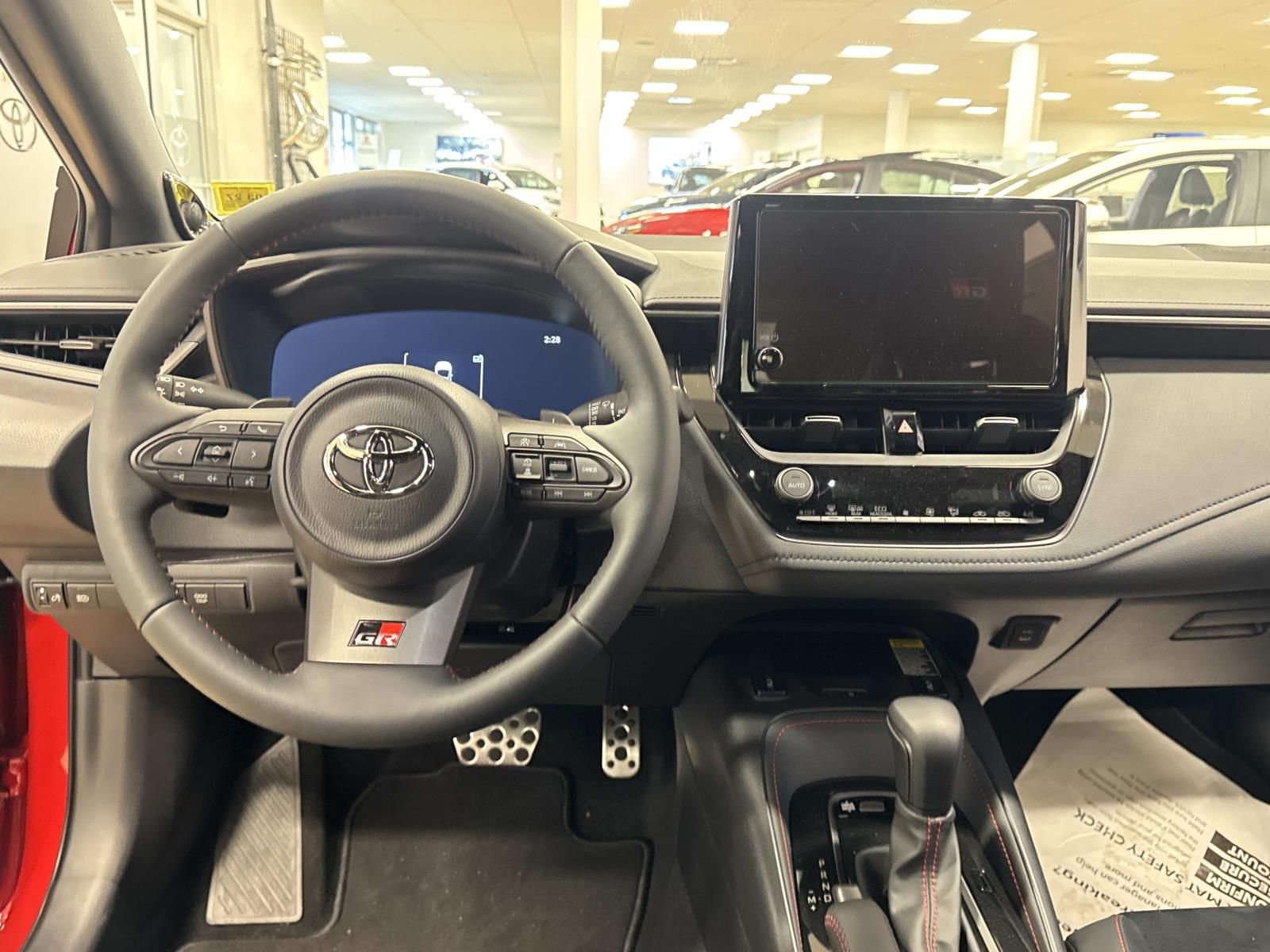 BRIN•NAUB® and synthetic leather-trimmed sport seats with Red stitching and GR-badged headrests; 6-way adjustable driver's seat with seatback pocket; 4-way adjustable front passenger seat with seatback pocketGR leather-trimmed, tilt/telescopic sport steering wheel including audio, Multi-Information Display (MID), Bluetooth® hands-free phone and voice-command controls -