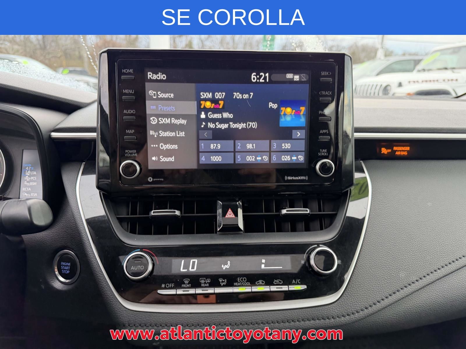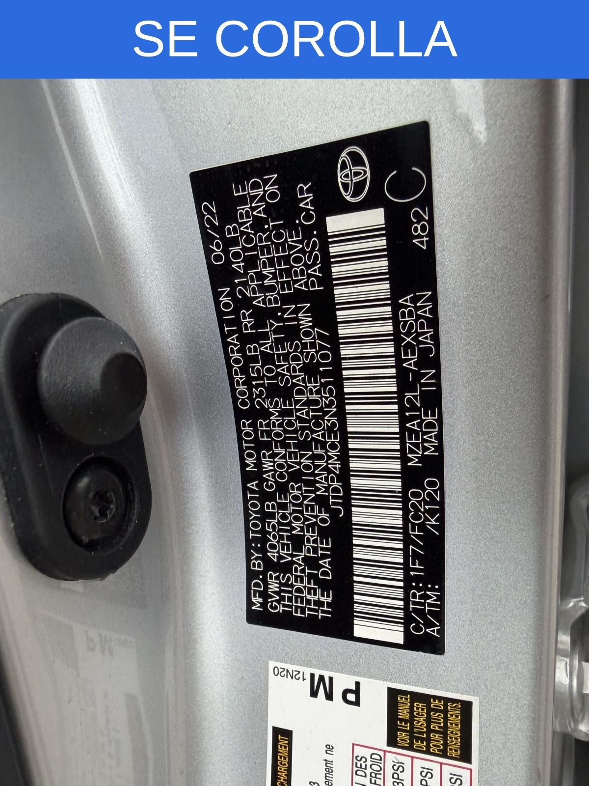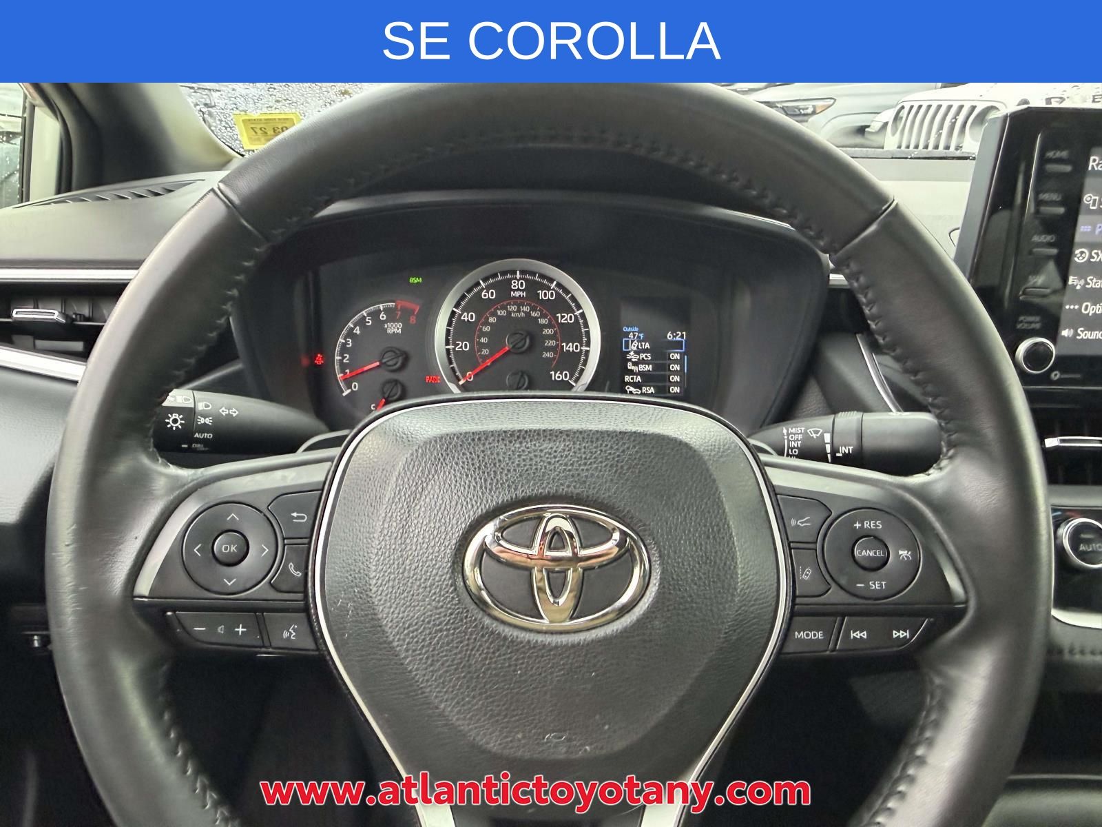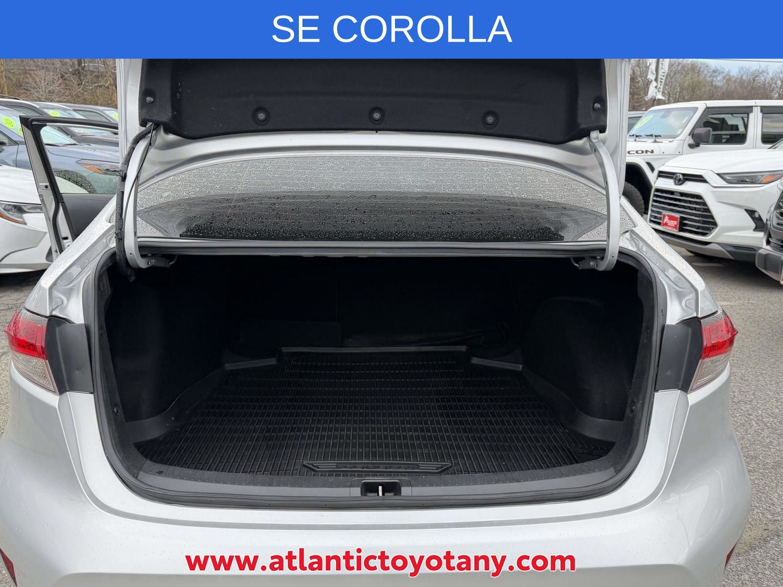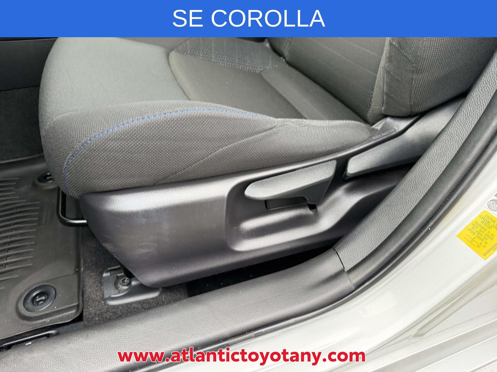 PASSES STATE INSPECTION, SERVICE RECORDS AVAILABLE, Alloy Wheels, Ambient Light Package, Audio Package, Backup Camera, Bluetooth, Climate Package, Convenience Light Package, Courtesy Lights Illum Package, Heat Package, License Plate Front Mount Package, Light Package, Multimedia Package, New Feature, Popular Equipment Package, Power Mirror Package, Power Package, Preferred Accessory Package, Preferred Equipment Package, Premium Wheels, SE Package, Safety Package, Corolla SE, 4D Sedan, 2.0L I4 DOHC 16V, CVT, FWD, Classic Silver Metallic, Black Cloth, 18" Machined Alloy Wheels, 4-Wheel Disc Brakes, 6 Speakers, ABS brakes, Air Conditioning, All-Weather Floor Liner Package (TMS), All-Weather Floor Liners, AM/FM radio: SiriusXM, Apple CarPlay/Android Auto, Auto High-beam Headlights, Automatic temperature control, Blind Spot Monitor (BSM) w/RCTA, Brake assist, Bumpers: body-color, Coin Holder/Ashtray Cup (TMS), Delay-off headlights, Door Edge Guards (TMS), Driver door bin, Driver vanity mirror, Dual front impact airbags, Dual front side impact airbags, Electronic Stability Control, Emergency communication system: Safety Connect with 1-year trial, Exterior Parking Camera Rear, Four wheel independent suspension, Front anti-roll bar, Front Bucket Seats, Front Center Armrest, Front Doors Smart Key System, Front reading lights, Front Sport Seats, Fully automatic headlights, Heated door mirrors, Illuminated entry, Knee airbag, Leather Shift Knob, Low tire pressure warning, Occupant sensing airbag, Outside temperature display, Overhead airbag, Panic alarm, Passenger door bin, Passenger vanity mirror, Power door mirrors, Power steering, Power Tilt/Slide Moonroof, Power windows, Preferred Owners Portfolio (TMS), Premium Fabric Seat Trim, Radio data system, Radio: Audio, Rear anti-roll bar, Rear seat center armrest, Rear side impact airbag, Rear window defroster, Remote keyless entry, SE Premium Package, Security system, Speed control, Split folding rear seat, Spoiler, Steering wheel mounted audio controls, Tachometer, Telescoping steering wheel, Tilt steering wheel, Traction control, Trip computer, Turn signal indicator mirrors, Variably intermittent wipers.